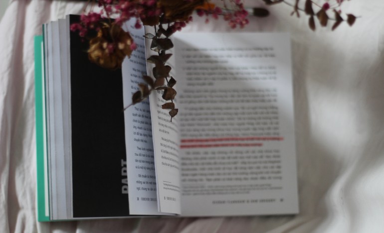 Hồi bé mình không có nhiều sách để đọc. Mình đã mượn bạn bộ Harry Potter và cày ngấu nghiến cả buổi tối, vô cùng nể phục vì sao lại có những cụm từ như Hẻm Xéo và Trường Sinh Linh Giá, đó quả thực là đỉnh cao trong việc dịch thuật. Lớp toán hồi đó nằm kế thư viện, mình có thể dành hàng giờ ở đó, mượn sách hôm trước và trả ngay hôm sau để mượn cuốn mới, đó là lúc mình biết đến Nguyễn Nhật Ánh. Lên đại học, đó là những hội sách, những anh chị yêu đọc sách trong câu lạc bộ, sự khám phá diệu kỳ rằng mua sách qua Tiki rẻ hơn rất nhiều, và thế là tủ sách ngày một đầy lên. Đọc sách đôi khi chẳng cần nhớ hết, mình chỉ cần thấy thoải mái khi đọc và rút ra được vài điều, vài câu từ, như vậy là đủ.