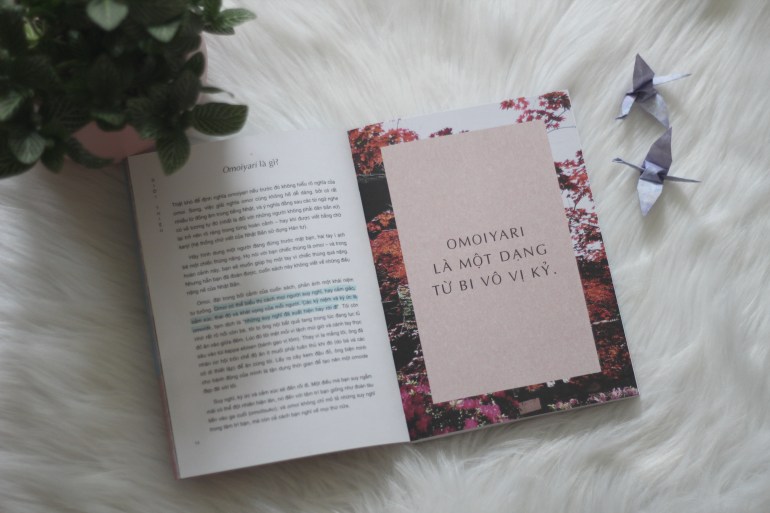 Một chương nữa mà mình rất thích trong Omoiyari đó là Zakka – vẻ đẹp của những thứ lặt vặt. Bản thân mình đã cố gắng trở nên tối giản, nhưng mình vẫn luôn yêu thích những điều nhỏ bé xung quanh, đó là lý do vì sao nhà mình có rất nhiều đồ đạc dù cho nhiều thứ cũng không thật sự cần thiết lắm. Khổng Tử đã nói rằng: “Mọi thứ đều có vẻ đẹp, nhưng không phải ai cũng nhận thấy.” Hơn cả “những thứ lặt vặt”, Zakka chính là việc ta tìm kiếm niềm vui và sự thoả mãn trong những thứ dường như bình thường hay chẳng đáng chú ý để tìm thấy sự hài lòng và biết ơn trong cuộc sống hằng ngày. Nghe có vẻ khá giống khái niệm wabi-sabi đúng không nào? Chương này nói một chút về những đồ đạc và việc tạo ra không gian trong căn nhà của bạn, đúng là những gì mình đang quan tâm gần đây nếu bạn theo dõi xứ sở màu hồng của Kim Xuân đủ lâu.