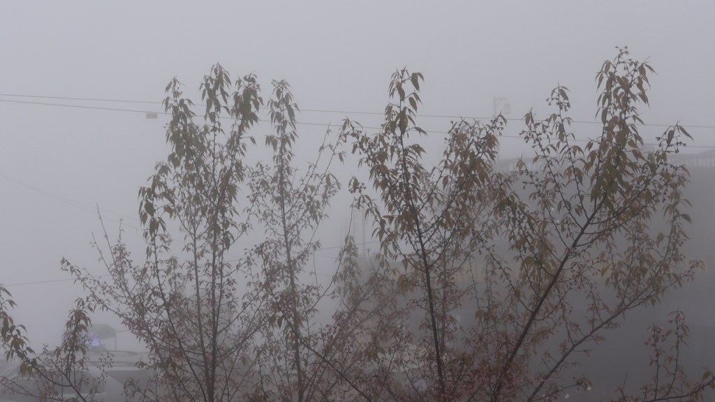 Tới Tà Xùa, nhà xe cho mình ngủ nhờ trên một dãy nệm dài đến sáu giờ sáng, rồi sau đó sẽ có dịch vụ thuê xe, chở Vali lên homestay, và tụi mình cũng có thể chỉ ngồi đấy cho ấm một chút. Tụi mình chờ sương tan bớt, nhưng có lẽ ngày hôm ấy sương cứ mù mãi như vậy, thế nên tụi mình đã đi bộ đến tiệm cà phê gần đấy và ăn mì, uống trà sữa nóng. Thời tiết lạnh khiến mì nguội nhanh hơn, và không có “View triệu đô” như các bạn hay check-in. Có những lúc, mây ùa vào nhà từng cuộn, giống như khi tụi mình đang đi máy bay và bay vào giữa một đám mây.