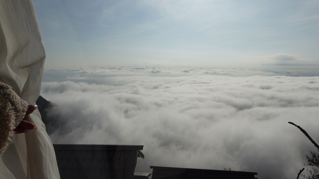 Khung cảnh ở homestay khi tụi mình nhận phòng vào 2h chiều đúng là như một giấc mơ. Từ cửa phòng mình có thể nhìn ra cả một biển mây hệt như chiều hôm qua bay trên máy bay, và điều đó khiến cho mình hạnh phúc đến mức cả chiều chỉ nằm trên giường ngắm mây ngoài cửa kính và tận hưởng niềm vui của việc chẳng làm gì cả. Đôi khi chúng ta sẽ cần những ngày như vậy, nằm dài ngắm mây, nghĩ về những gì đang diễn ra trong cuộc sống, để cho tâm trí chỉ còn là một biển mây tĩnh lặng, trở về lại với con người bên trong mình.